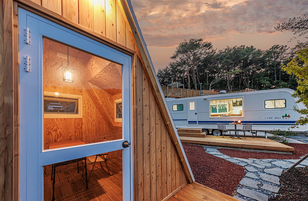 더블 침대1+싱글 2층침대1+개별 화장실,욕실 카라반+텐트